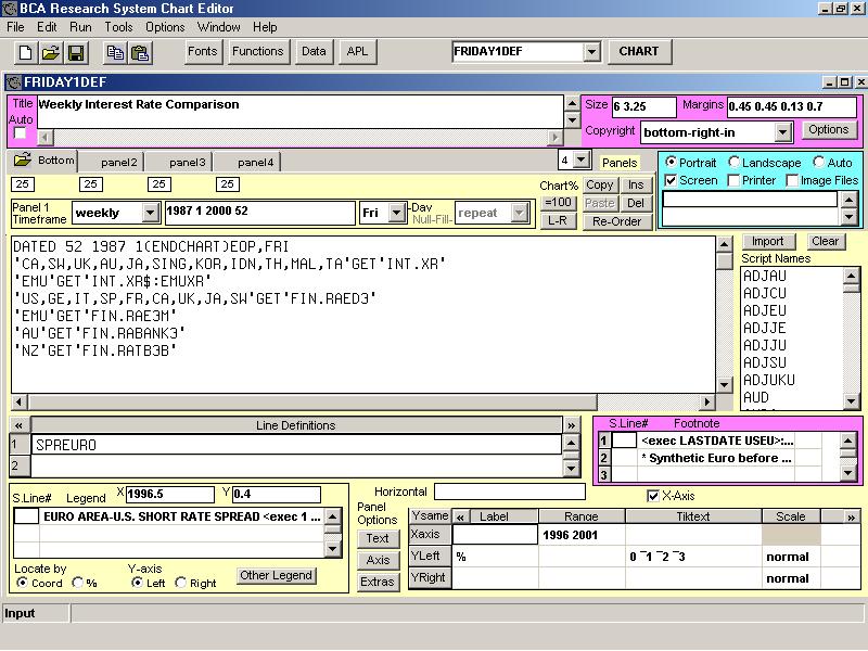 The chart editor, written entirely in Dyalog APL, lets users visually customize all aspects of the graphical output, then save those specifications in a chart-definitions database.